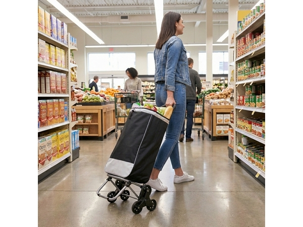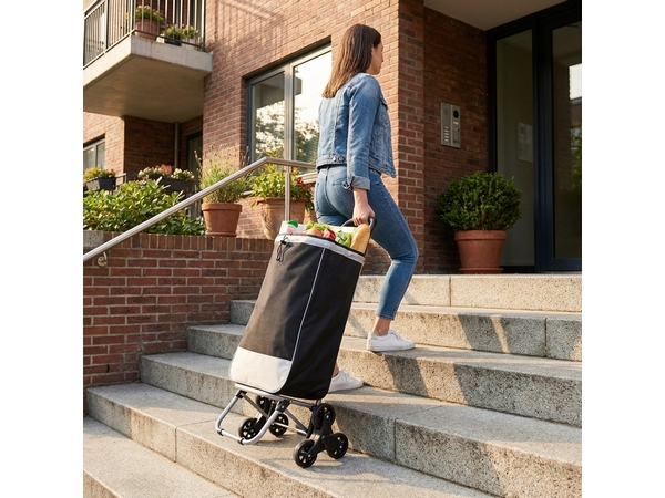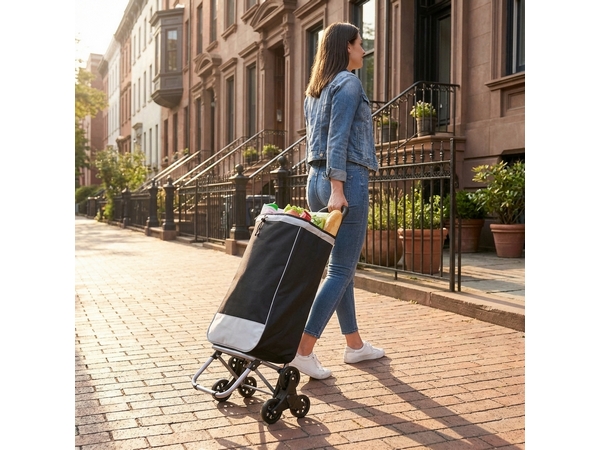 3-Wheel mechanism for climbing stairs. With Front Carry Bag and Back Zip Pocket