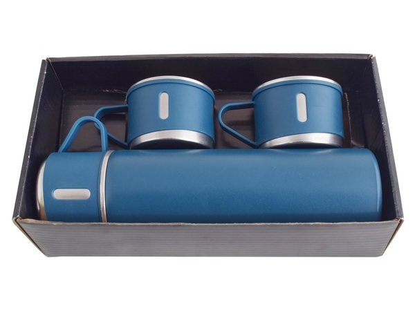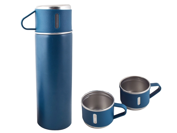 500ml Flask has double-wall stainless steel insulation, keeping beverages hot and cold. With a Hermetic vacuum seal, ensuring perfect waterproofing and an odourless inner lining. Includes 3 x 120ml matching mini mugs, perfect for sharing coffee, tea or a cold beverage, that also fit on the flask as a lid.