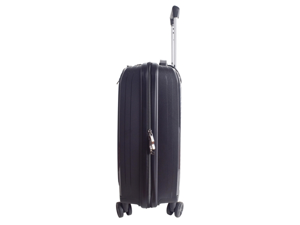 Polypropylene is the lightest plastic on the market. It is Temperature, Chemical and Scratch Resistant. With a spacious main luggage compartment, front padded laptop compartment and inner polyester lining. Includes a TSA-approved lock and anti-theft zip pullers for added protection. With 4 x multi-directional wheels for smooth 360 degree manoeuvrability, lightweight aluminium telescopic handle and top rubberised carry handle for easy lifting.